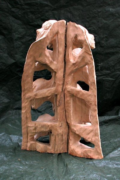 "Kärttyisät miehet" 2009 (lehmus) Koko: 60cm x 38cm x 90cm