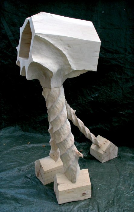 "Kylä" 2009 (haapa, mänty, vernissa, pigmentti) Koko: 165cm x 70cm x 110cm