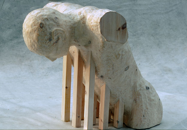 "Lentäjän poika" 2000 (mänty, vernissa, pigmentti, vaha) Koko: 77cm x 60cm x 100cm