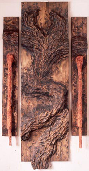 "Ovi" 2003 (mänty, pigmentti, vernissa, vaha) Koko: 230cm x 110cm x 16cm